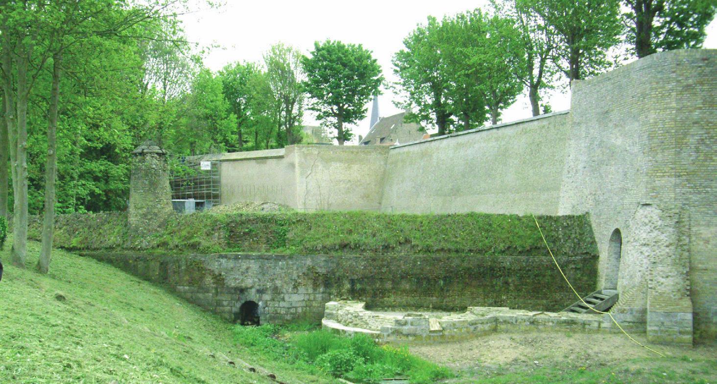 Un batardeau surmonté de sa dame, l’ouvrage permettait d’inonder le fossé, la dame empêchait quant à elle l’intrusion de l’ennemi par le faîte du batardeau, et à droite, une poterne