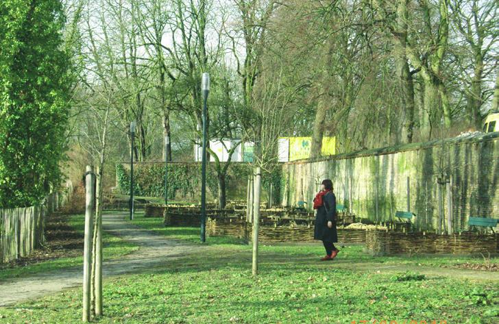 Une petite collection d’arbres fruitiers de plein vent composée de différentes variétés de pommiers (Malus sp.) et poiriers (Pyrus sp.) est aussi plantée en clin d’œil au jardin initial. Les fruits de ces arbres sont dévolus à la cueillette des promeneurs.