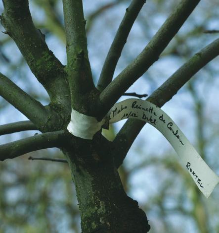 Er komt ook een kleine collectie solitaire fruitbomen: verschillende variëteiten van appel- (Malus sp.) en perenbomen (Pyrus sp.), verwijzend naar de vroegere moestuin.