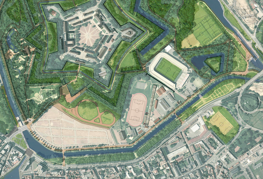 La Ville de Lille s’est engagée depuis 2003 dans un vaste plan de réaménagement de la Citadelle. Les orientations qui ont été choisies pour l’entretien, la gestion et l’aménagement du parc de la Citadelle sont le Patrimoine, les Usages (ou activités) et la Nature. Le parc de la Citadelle a fait l’objet d’un schéma directeur qui détermine la vocation et l’affectation de chacune des parties du parc. Les opérations les plus importantes sont l’aménagement de l’esplanade du Champ de Mars et de la Plaine de sports et de loisirs. Le Champ de Mars correspond à une surface de 21 ha et la plaine à une surface de 12ha (ces surfaces sont à comparer avec la surface totale de la Citadelle qui est de 110 ha). Ces projets visent à redonner de la cohérence à l’ensemble du parc de la Citadelle, à augmenter la qualité des milieux naturels, en particulier les prairies sèches et les zones humides, et à restituer des éléments disparus de la fortification. Ils ont fait l’objet de commande à des maîtres d’œuvre extérieurs, soit par appel d’offres, soit par concours. Les équipes de maîtrise d’œuvre réunissent des compétences en paysage, écologie, architecture, voirie et patrimoine. |